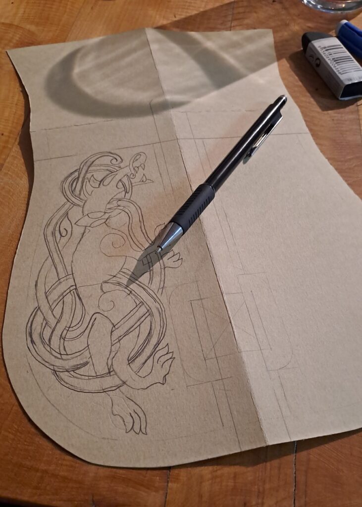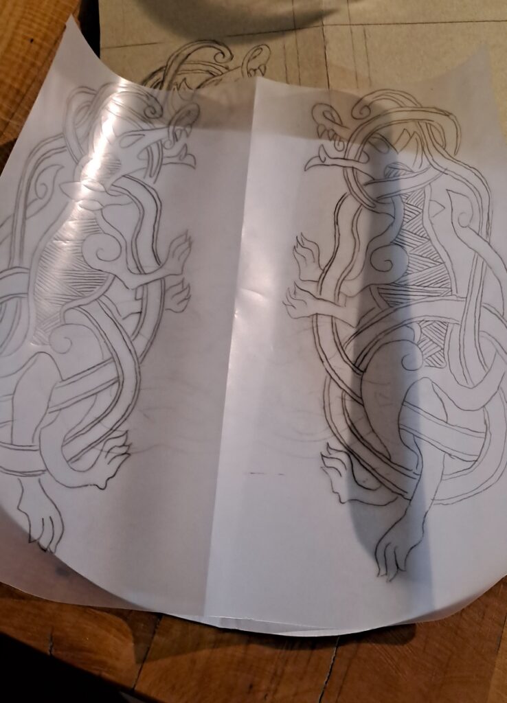 I began by sketching a custom, Nordic-style knotwork ornament by hand. When the design was finalized, I traced it onto tracing paper.