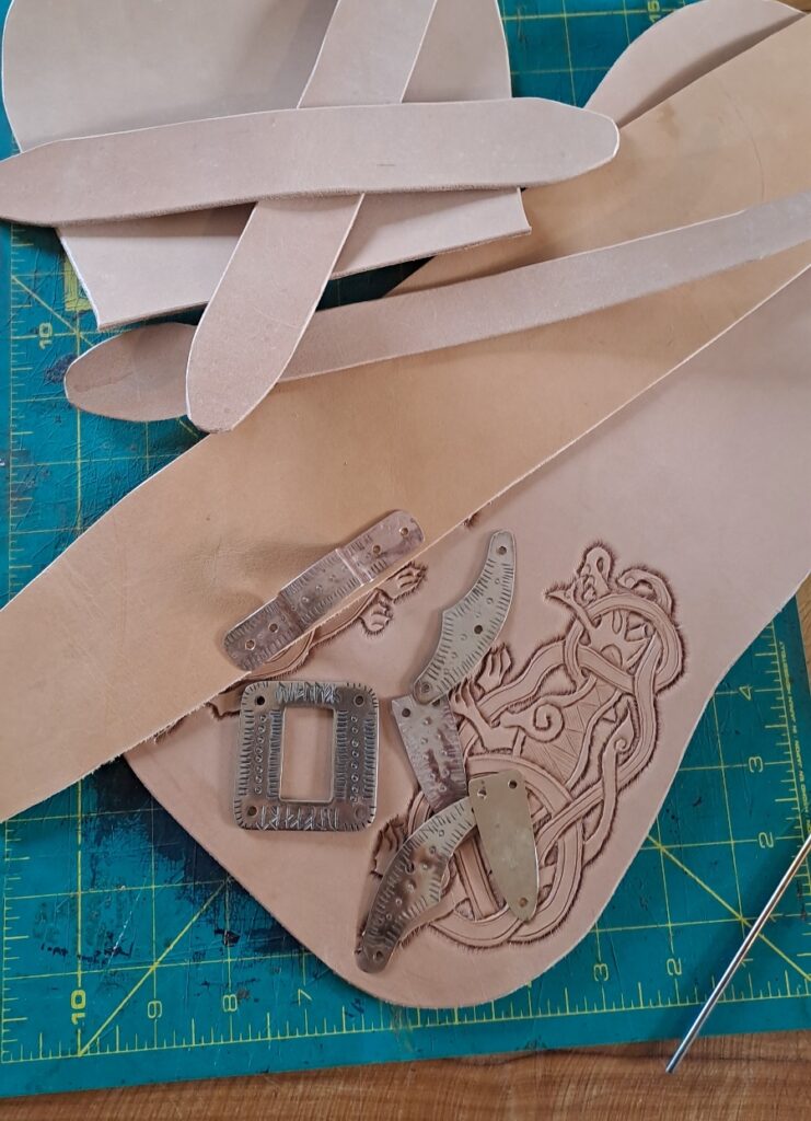 I began by tracing the pattern—a simple, rounded design inspired by archaeological finds from the Viking Age. Using a sharp blade, I cut the pieces from a neck. There is a weight to veg-tan leather that demands respect; you can feel the density of the fiber with every stroke.