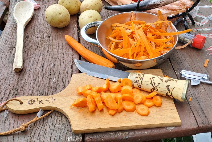 I didn’t bring a kitchen’s worth of gadgets into the woods. I brought my Sami knife. This traditional blade of the North is designed for survival, but its true beauty shines in the camp kitchen.